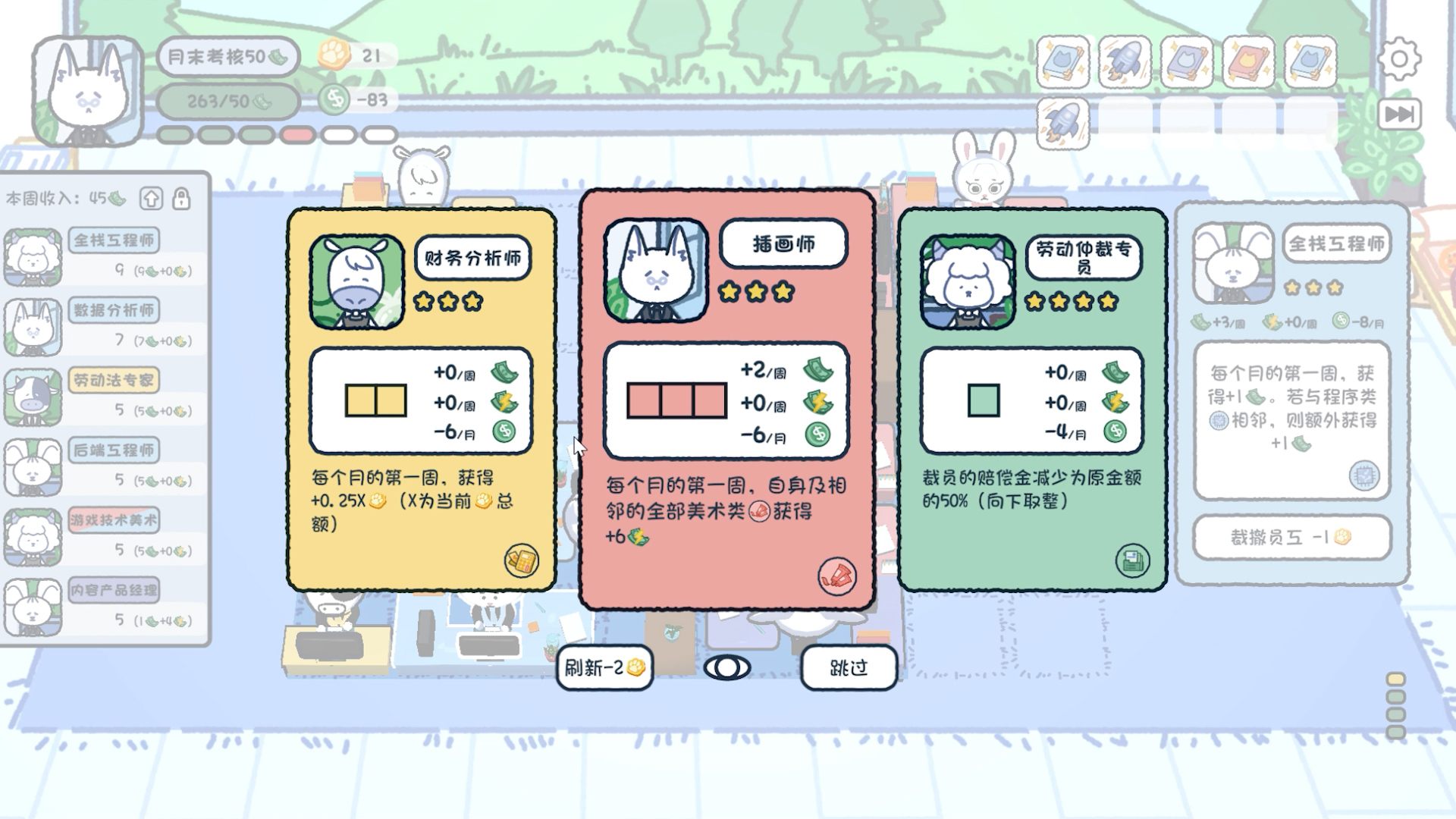 - 游戏的核心牌组构建玩法,主要指员工技能系统的实现
